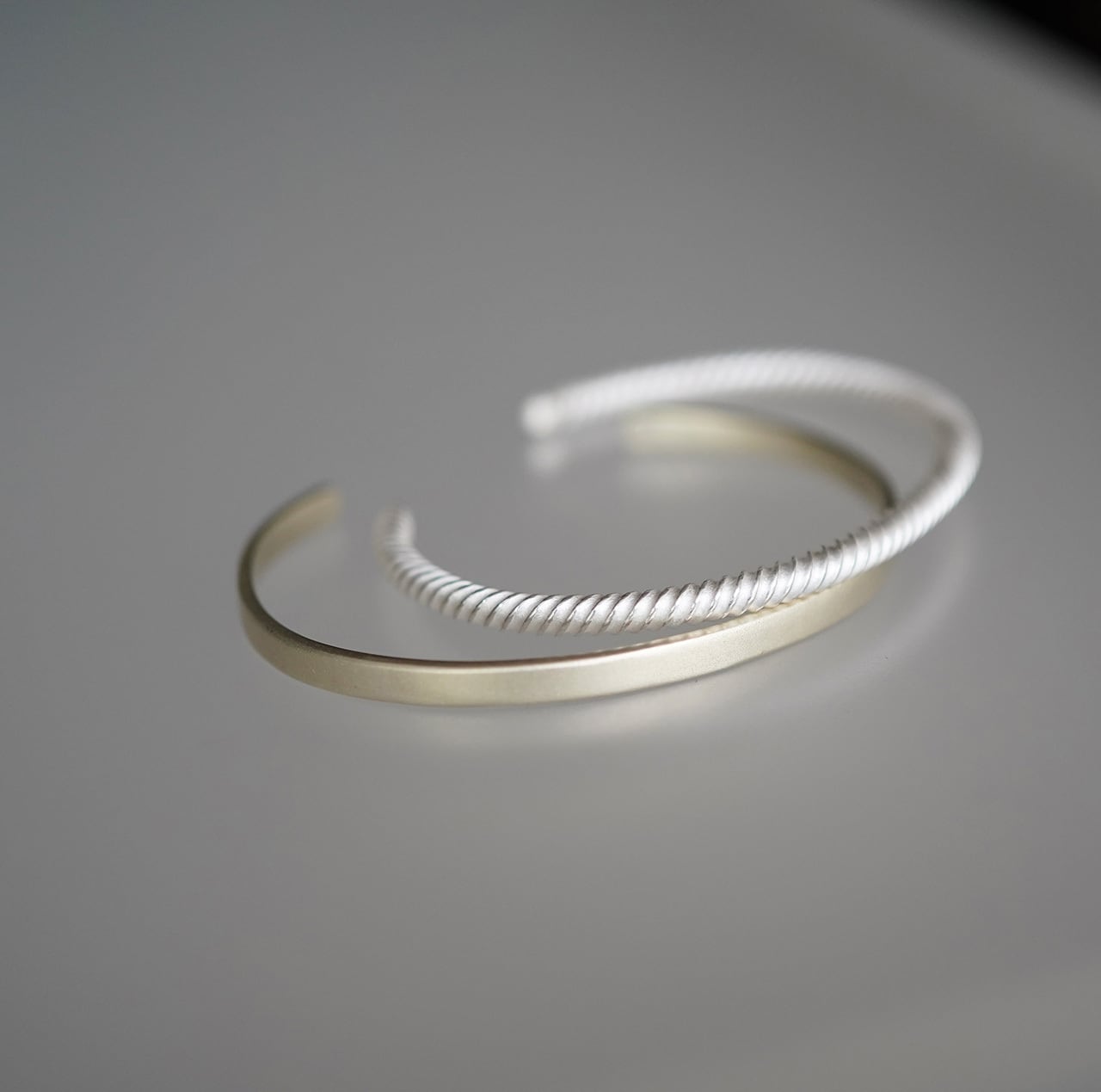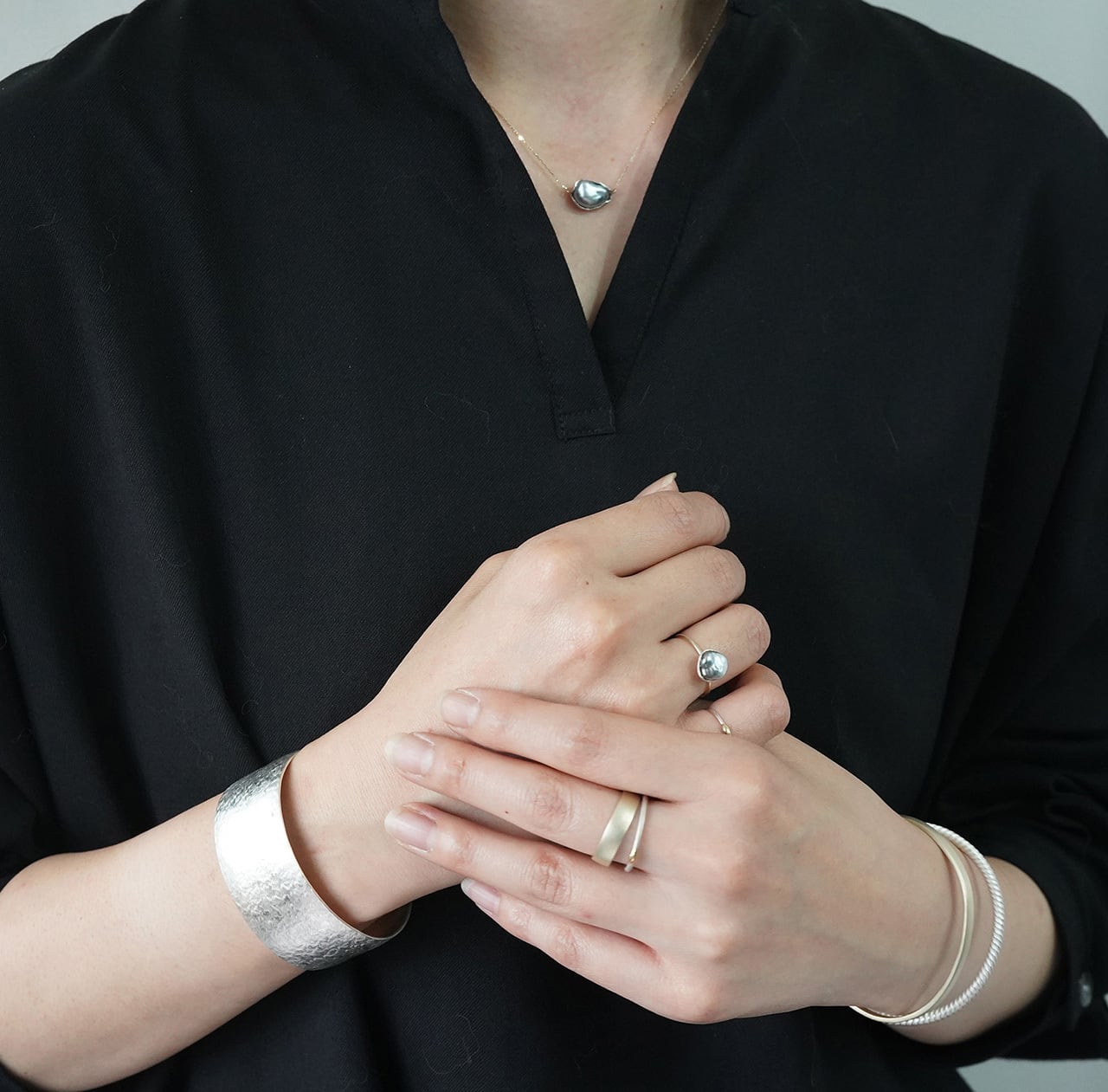 エッジとなった角の部分につや感を与えることで、純銀の持つマットな白さと、輝きが交差す