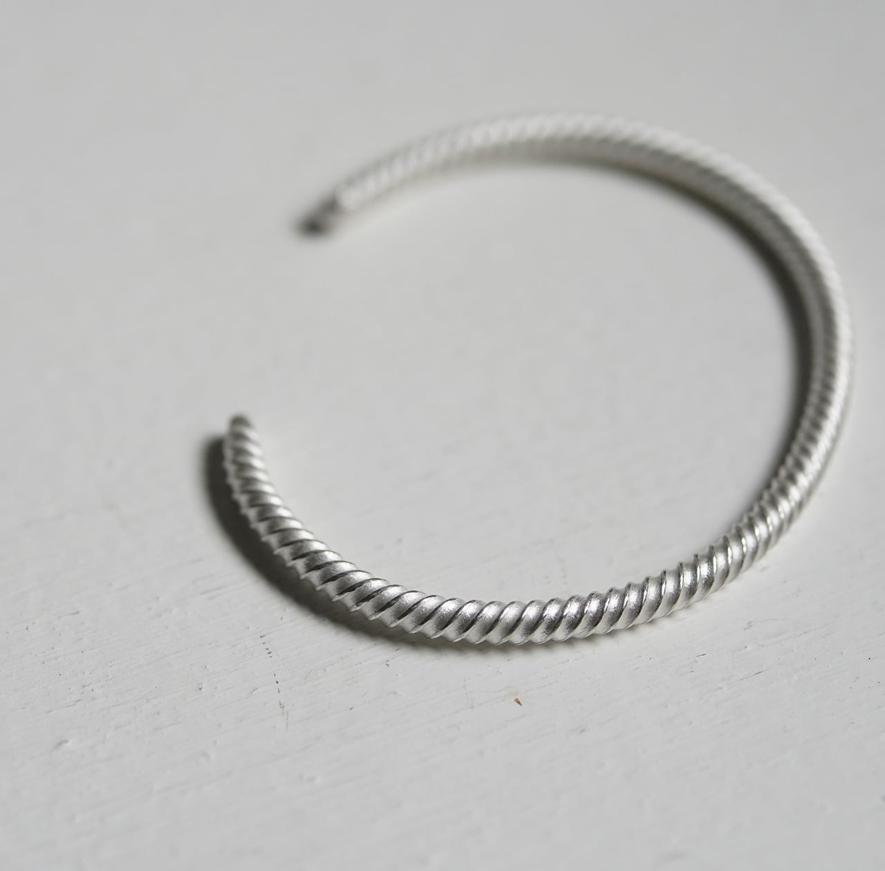角線の金属棒を、数十回とねじることで、より円に近い断面を持ったフォルムとなります。